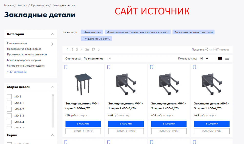 Парсер информации каталога со стороннего сайта